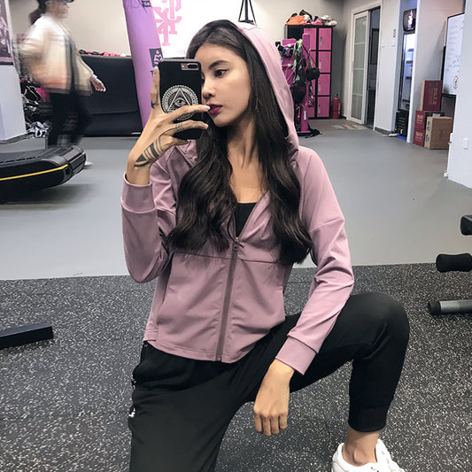 Yoga Clothing Top Long-sleeve Zipper Hooded Sports Jacket